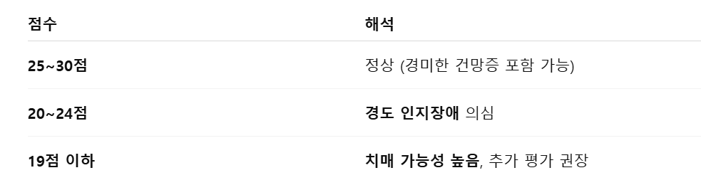 점수만으로 치매를 단정 짓지 않음 (진단은 전문의 판단 필요)